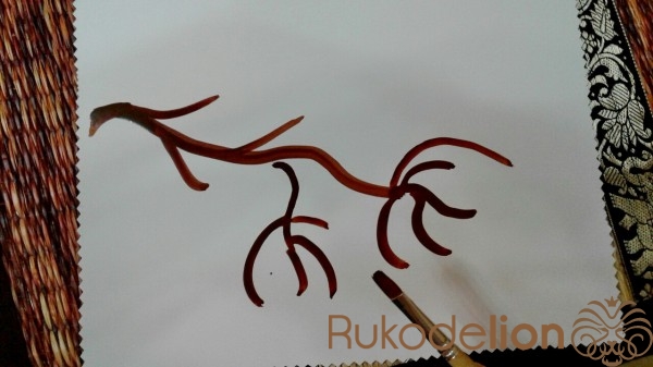 Далее, мы берем зубную щетку (можно обычную кисть с щетиной) и выбирая цвет акварельной краски создаем брызги. Держа щетку в руке, перед этим окунув ее в акварельную краску, мы большим пальцем проводим по щетке и разбрызгиваем нужный цвет акварельной краски. Я повторила такое движение в трех цветовых решениях!