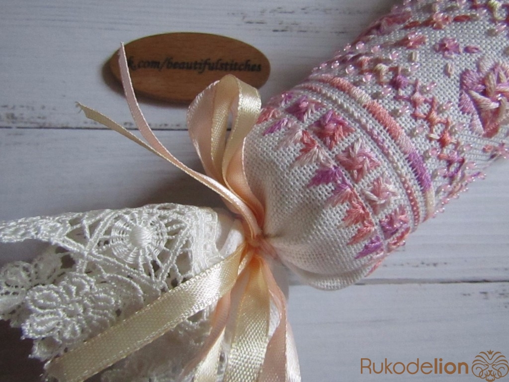 Для батончика я всегда беру канву шириной 18 см. В данном дизайне 10 см сама вышивка + 4 см с двух сторон (с учетом припусков).