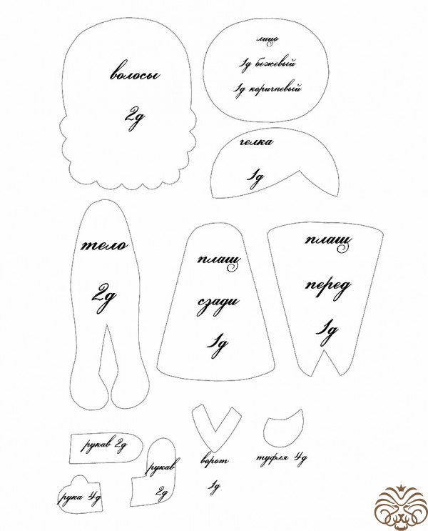 Итак, для создания фетровой выпускницы 13 см высотой нам понадобится: