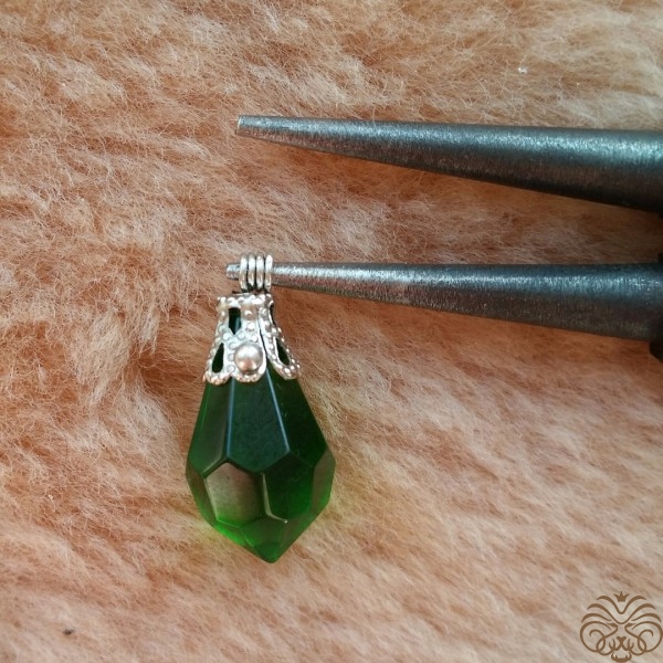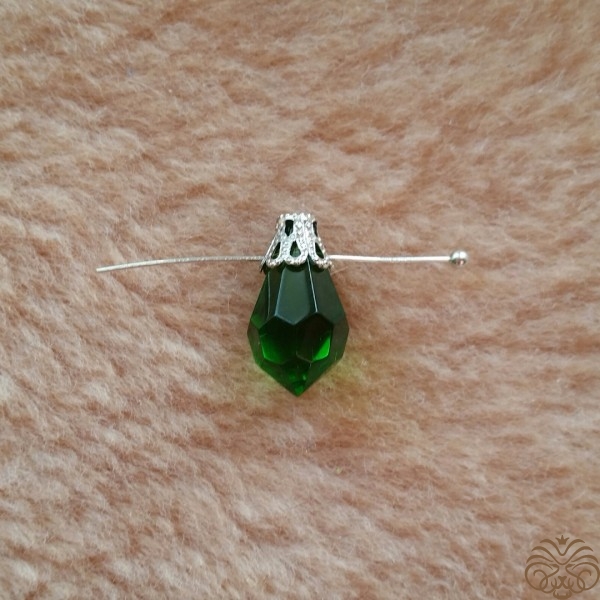 1. Вставляем пин-шарик в бусину с ажурным колпачком.