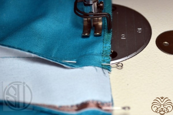 5. Сметать боковые швы, швом 15 – 25мм, либо сколоть булавками, совмещая рисунок, если такой присутствует, ширина шва 16мм.
