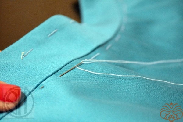 11. Приметать пояс по всей длине насквозь, для закрепления внутреннего шва пояса.