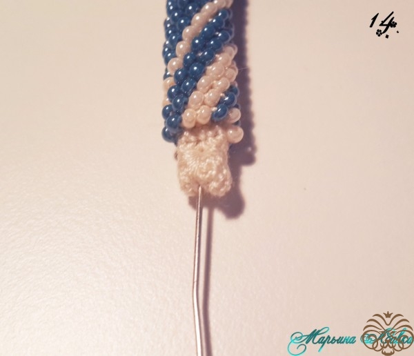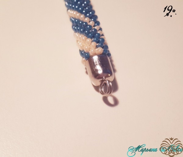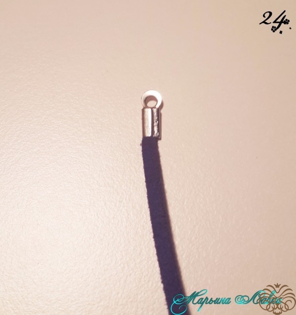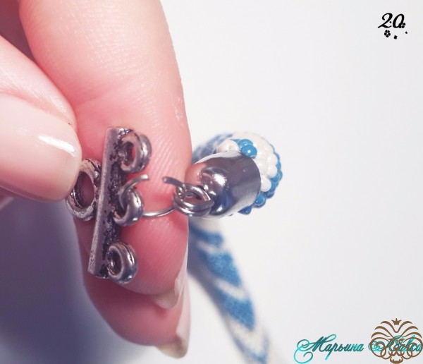 Многие используют для крепления бусину, мне для такого тонкого жгута хватает и вшивания.