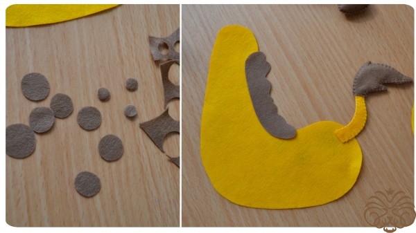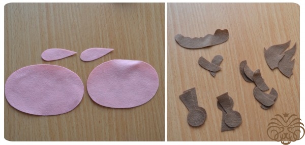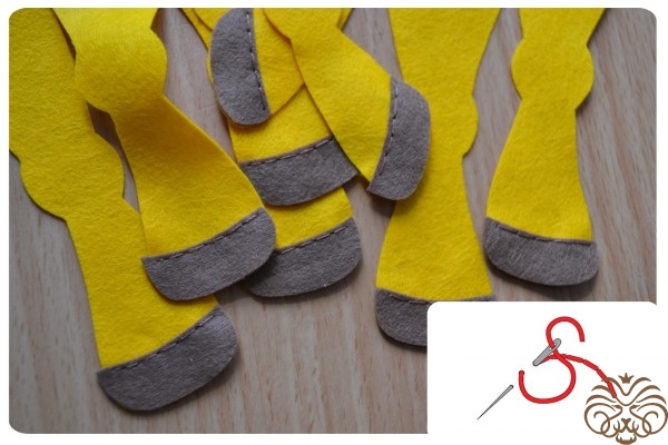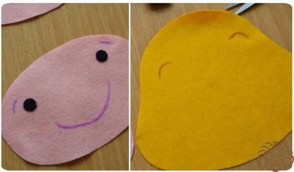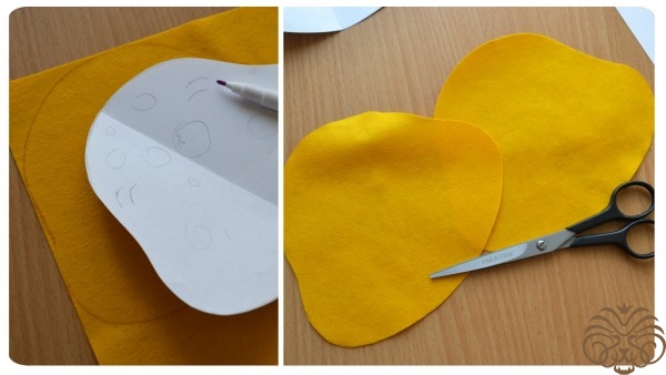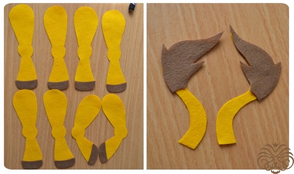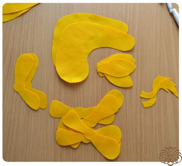 1. фетр: желтый, розовый, коричневый, голубой, черный (я буду использовать испанский, мягкий, самый тонкий (~1мм), полиэстеровый фетр)