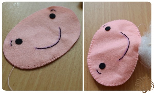 3. инструменты и прочее: ножницы, синтепон, иголка, самоисчезающий маркер, клей момент кристалл или любой другой текстильный клей, дырокол по фетру, белая краска по ткани, кусочек мыльца или мела, мелкие пуговицы, румяна