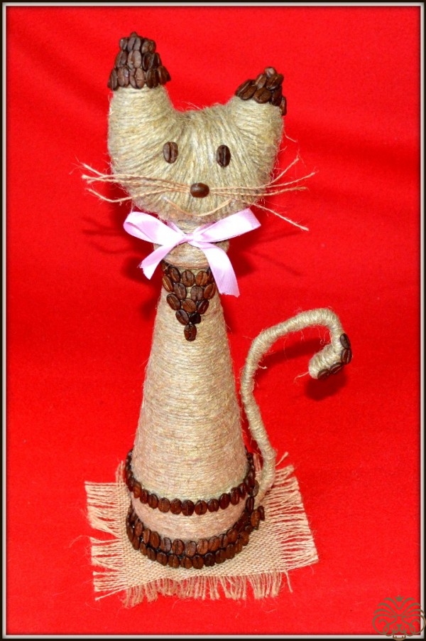 Украшаем туловище кошечки и голову зернами кофе, на свой вкус.