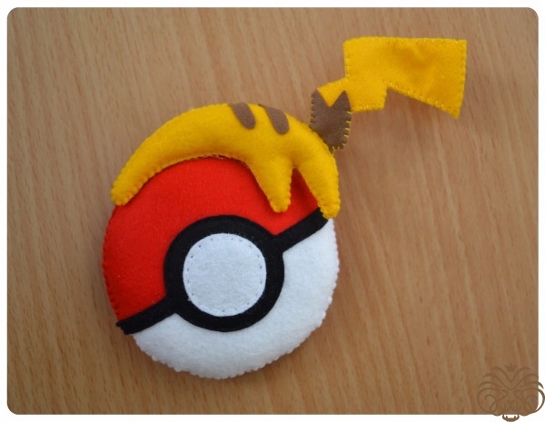И вот наш Покемончик готов! Приклейте к нему магнитик и украсьте им свой холодильник. Или вставьте шнурочек с карабинчиком, и у вас получится брелок или подвеска в машину. А можем пришить крепление для брошки и прицепить такую брошку к рюкзаку школьника.