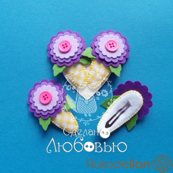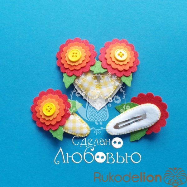Заколки для маленьких модниц в фетровых чехлах, декорированы яркими цветами. Украсят любую причёску и сделают ее неповторимой!