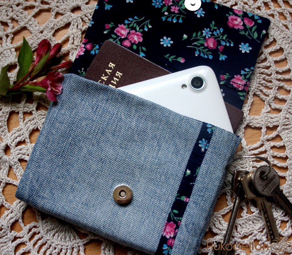 Материалы: плотная ткань для внешней стороны (в данном случае это отрез от ненужных джинс)), ткань для внутренней стороны, флизелин, магнитная застёжка, линейка, ножницы и иголка с ниткой подходящего цвета.