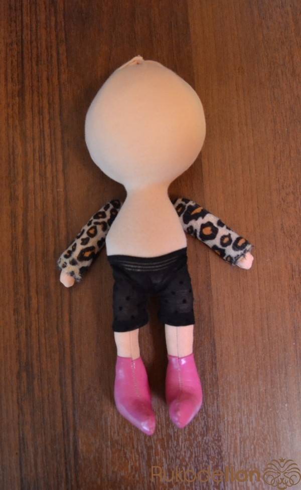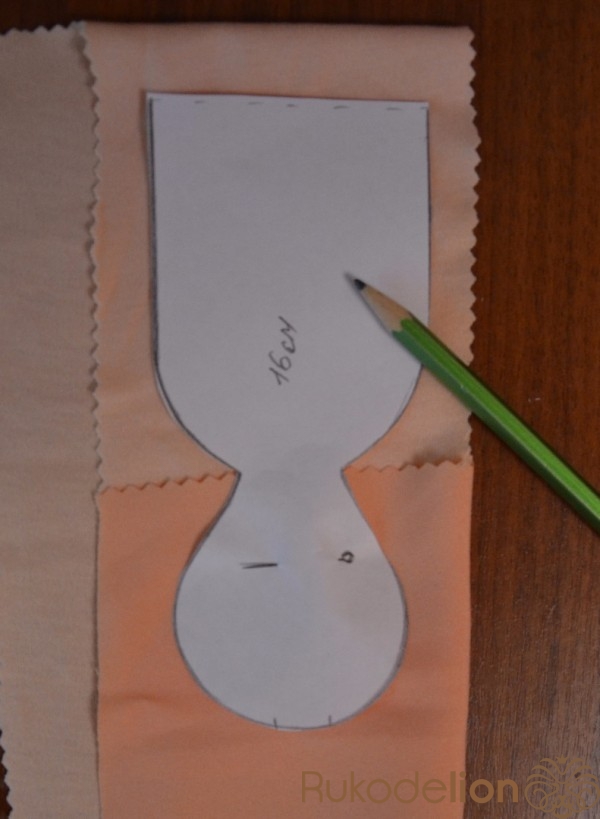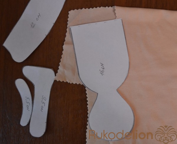 Вырезаем нашу выкройку. Для пошива тела я обычно использую интерлок. Он достаточно плотный и довольно хорошо тянется.