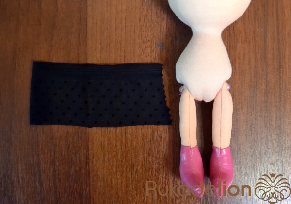 Для того, чтобы кукла получилась ровненькой и пропорциональной, кусочек трикотажа для тела с обеих сторон необходимо проклеить флизелином. Но это долго) Мы упростим наш процесс, подложив с обеих сторон до уровня шеи кусочек габардина в тон.