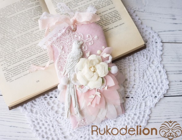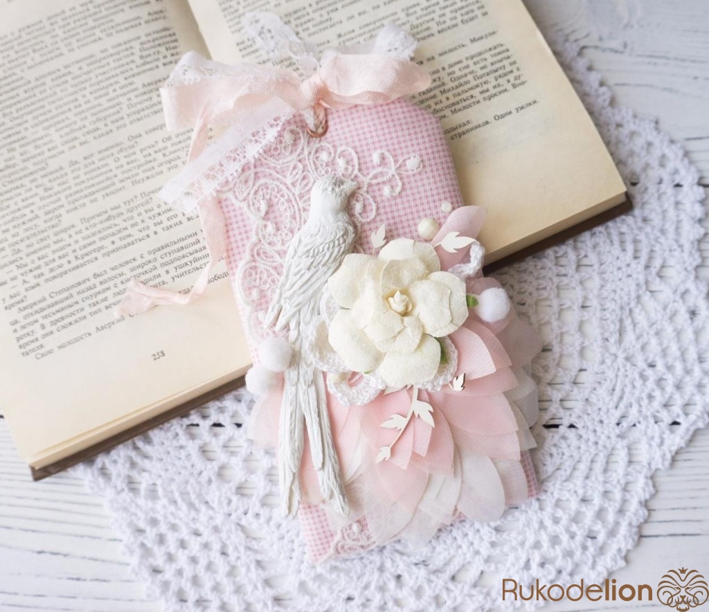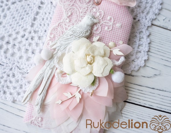 Мягкая открытка в стиле шебби-шик. Сзади есть место для пожелания и кружевной зажим для денежного подарка.