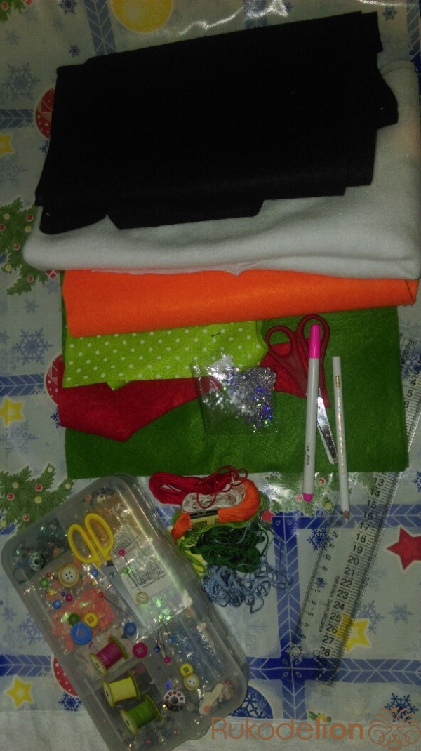 Из бирюзового фетра вырезаем шарф