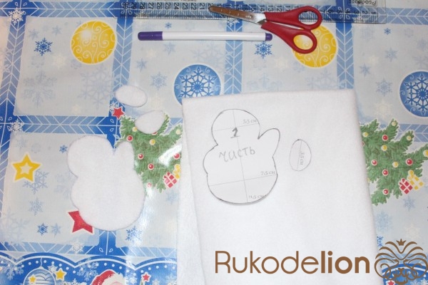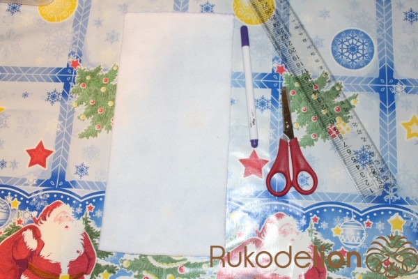 Вырезаем полоску из белого флиса , будет пришита в верху чехла. Ширину и сугробы делаете на своё усмотрение.