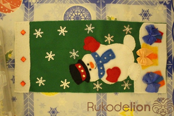 Пришиваем подарочки на нижнюю часть, под снеговиком