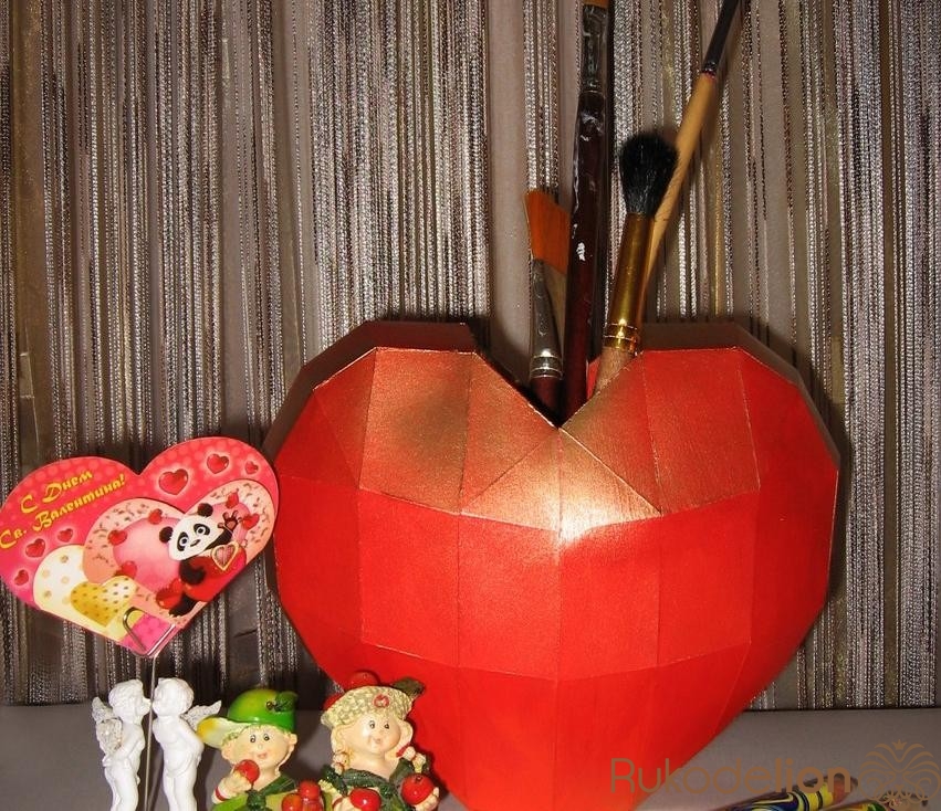 Сердце-подставка выполнено из бумаги в технике паперкрафт. Авторская разработка развертки. Оригинальный подарок на День влюбленных.