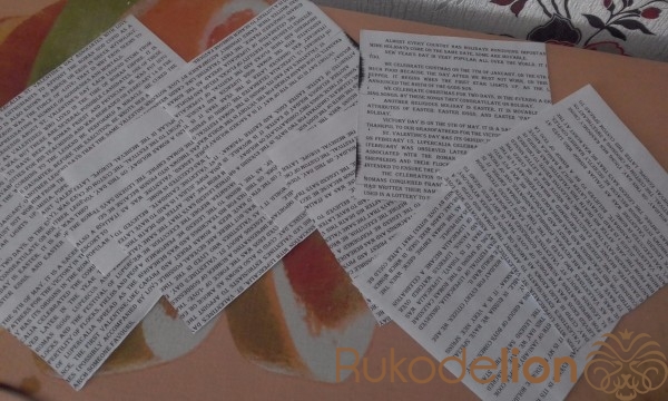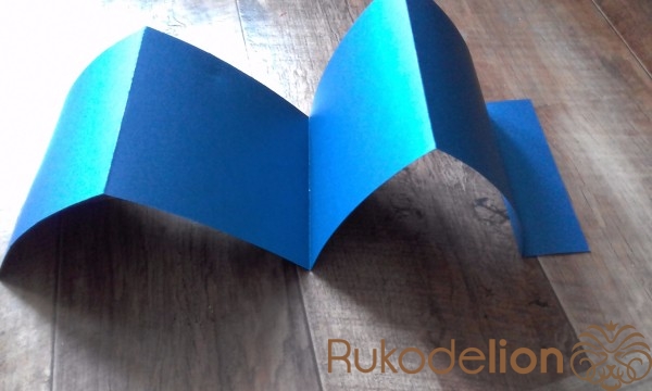 Намечаем линии сгиба каждые 15 см. Останутся "хвостики", но не нужно их отрезать! Они помогут нам склеить 2 полосы основы вместе.