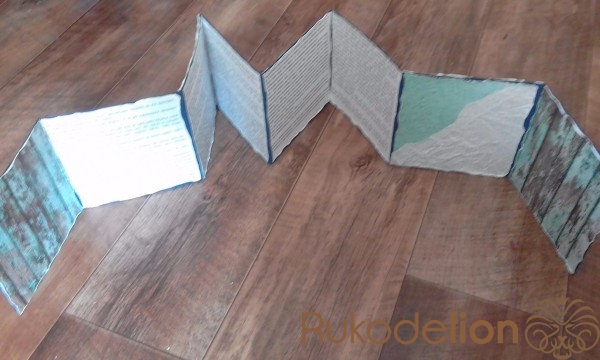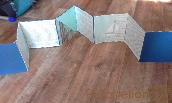 Теперь вырезаем из тонкого картона полосу высотой 15 см и длиной с весь лист. Заранее прикиньте на сколько фотографий должно хватить альбома. В нашем случае это 14 фотографий. Поэтому для гармошки нам понадобится 2 полосы картона.
