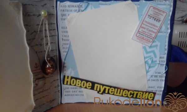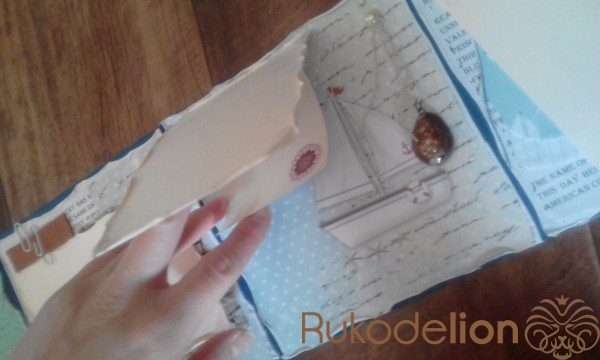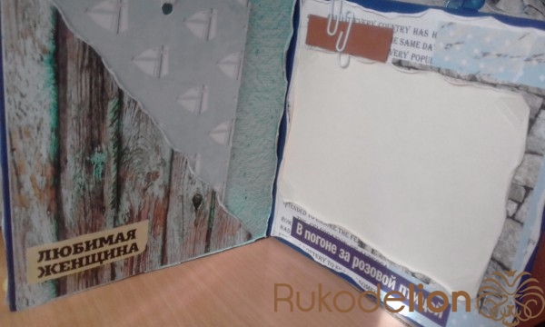 Отмечу, что ленту мы крепим только к одной из сторон обложки. В данном случае, это титульная сторона, а вы можете зафиксировать ее и сзади.