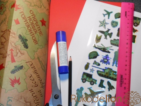 Для создания небольшого альбомчика из белой бумаги и обёрточной вырезаем заготовки таких же размеров как и для красной бумаги.