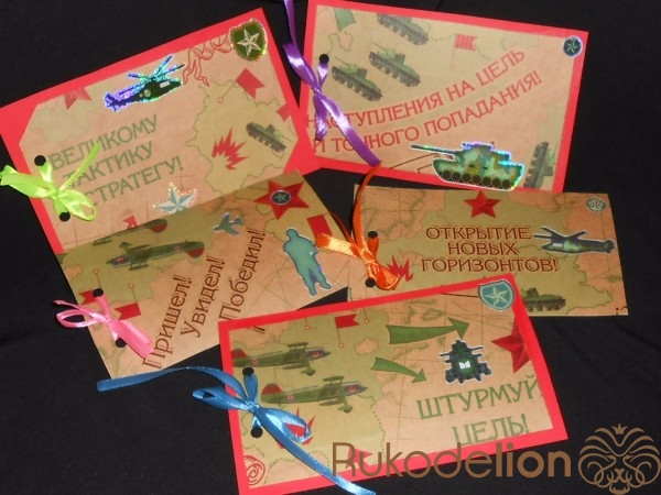 Простые в исполнении открытки с пожеланиями для будущих воинов!