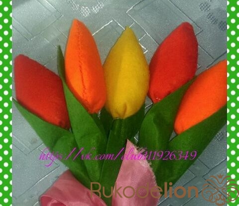 Тюльпаны выполнены из фетра. Сшиты полностью вручную.