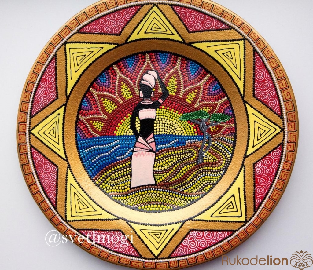 Тарелка декоративная выполнена в технике точечная роспись акриловыми красками и контурами в ярких тонах, напоминающих о весеннем солнце.