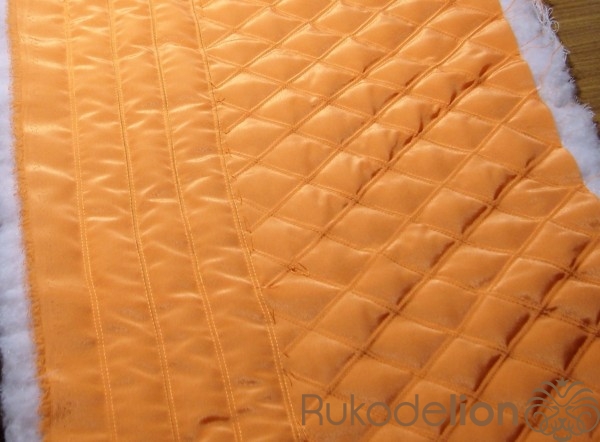 Затем складываем состроченные верх и подкладку боковыми швами. Стачиваем боковые щвы, оставив незастроченным отверстие 10-12 см в подкладке для выворачивания изделия на лицевую сторону.