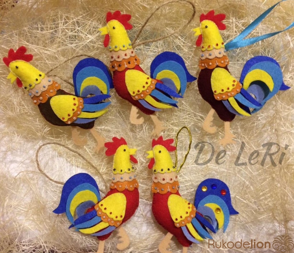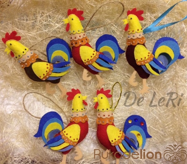 Петушки выполнены по мк Иголкиной. Материал разноцветный фетр,бисер,синтепон.