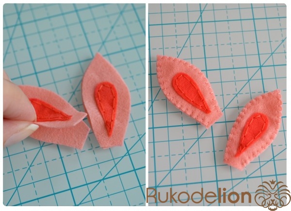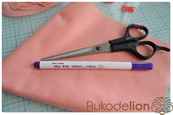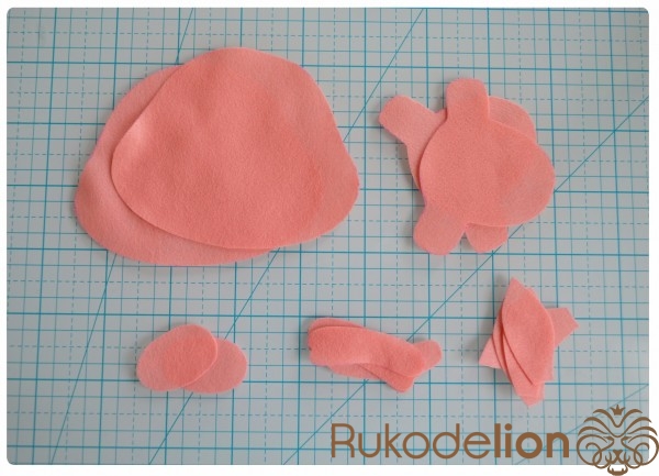 2. Фетр: розовый, коралловый, голубой, черный (я буду использовать тонкий (0,5мм) мягкий полиэстеровый испанский фетр)