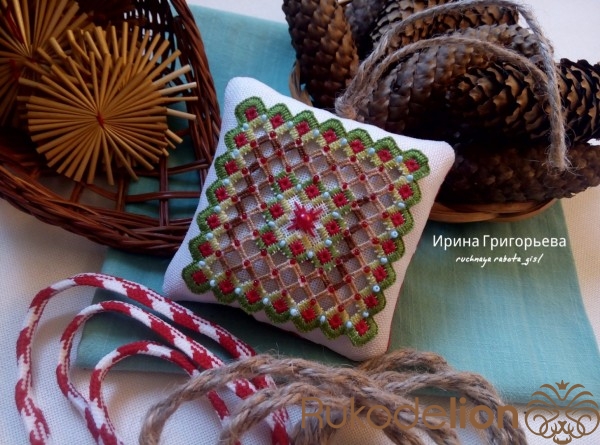 Бискорню - оригинальное небольшое объемное изделие, "кривулька", состоящее из двух квадратов канвы. Можно использовать как игольницу или елочную игрушку. Изменяя дизайн, можно сделать милый подарок к любому празднику. В мастер-классе вы найдете красивую схему для бискорню и подробную инструкцию по сборке.