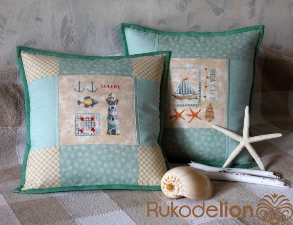 Один из популярных вариантов в оформлении вышитых дизайнов - сшить подушки. Они особенно интересно смотрятся в сочетании с техникой лоскутного шитья и красиво смотрятся в интерьере.