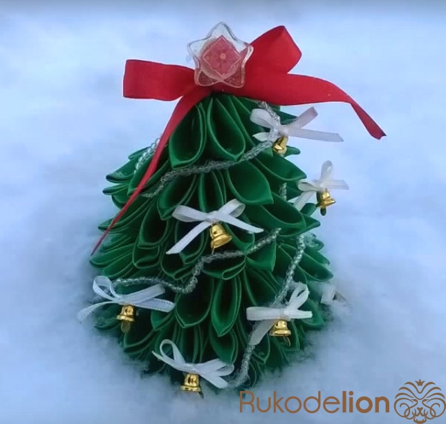 Ёлочка из атласа для украшения новогоднего стола (видео)
