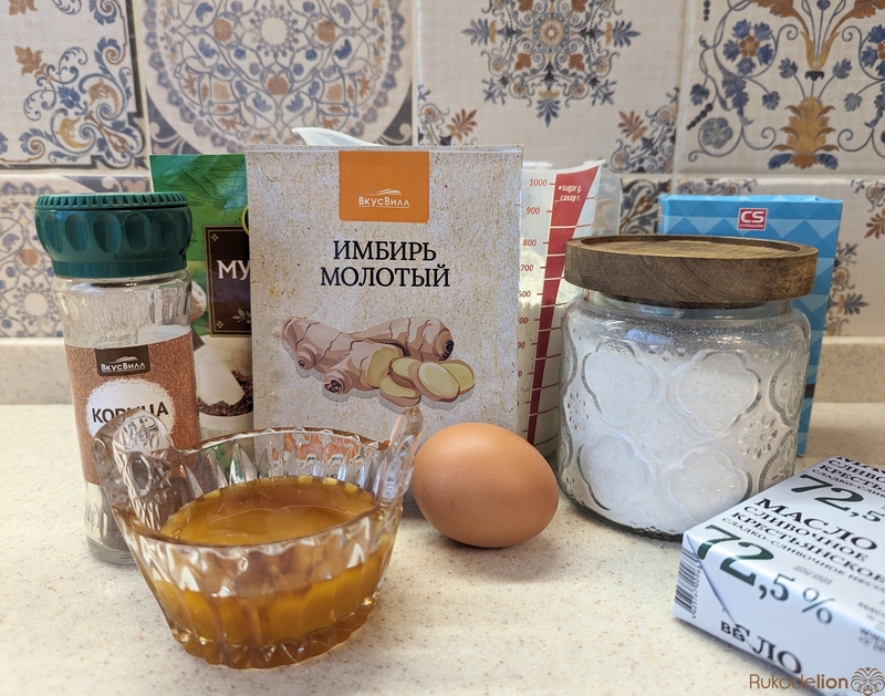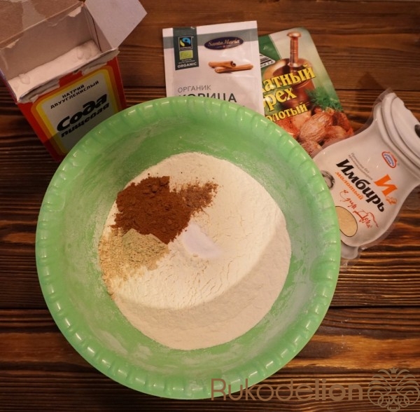 В миску просеиваем муку, добавляем соду, специи и хорошо перемешиваем. В другой миске растираем сливочное масло с сахаром, взбиваем миксером до получения пышной массы. Затем добавляем яйцо, взбиваем. Добавляем мед (его необходимо немного растопить). Добавляем муку, замешиваем тесто.