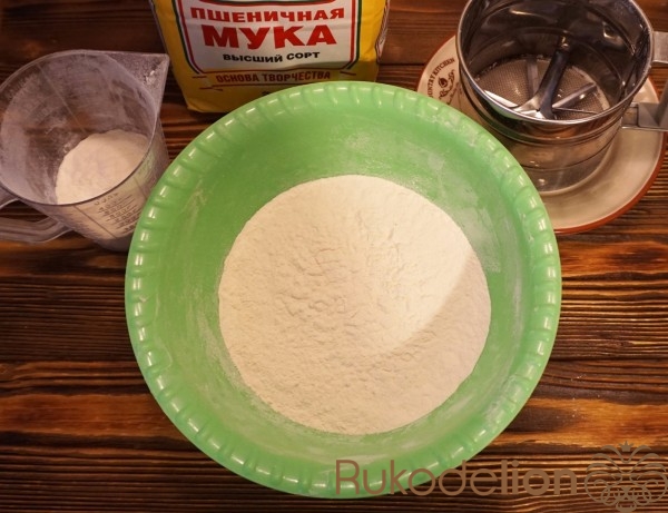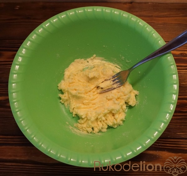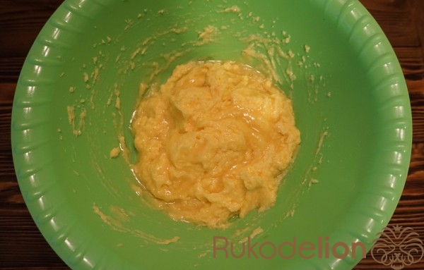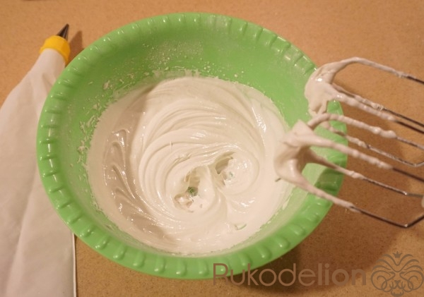 Делаем глазурь. Нам понадобится 1 белок, добавляем к нему 200 г сахарной пудры (может понадобится немного больше в зависимости от массы белка), 0,5 ч. л. крахмала, перемешиваем, взбиваем. Масса становится белой и более плотной. Добавляем 0,5 ч. л. лимонного сока, продолжаем взбивать.
