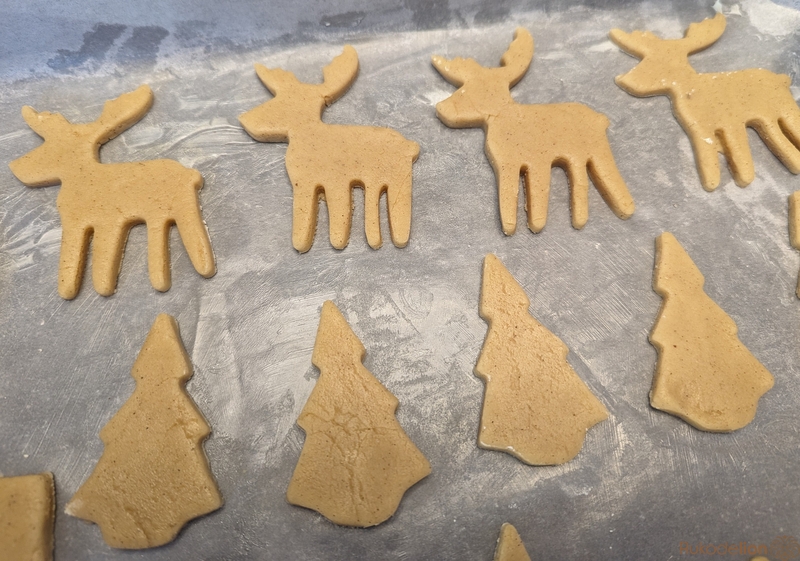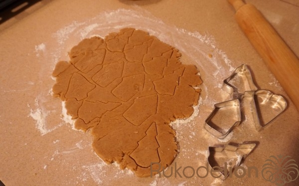 Раскатываем тесто толщиной примерно 3-4 мм. Вырубаем фигурки при помощи формочек.