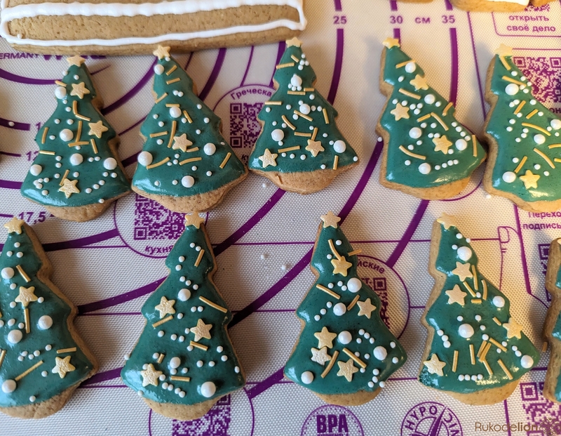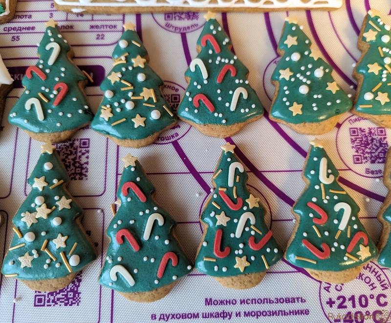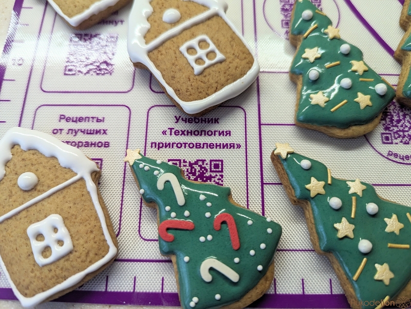 Окрашиваем глазурь при помощи красителей и украшаем печенье.