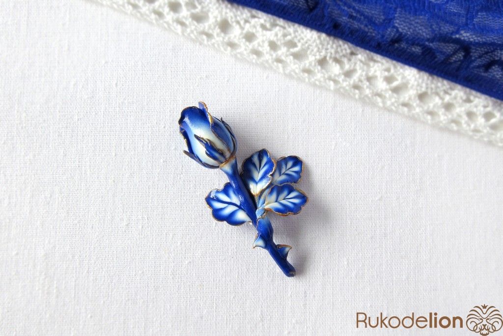 В этом мастер-классе вы увидите, как из полимерной глины создать очень оригинальную и стильную брошь в виде бутона розы с расцветкой в стиле «гжель».