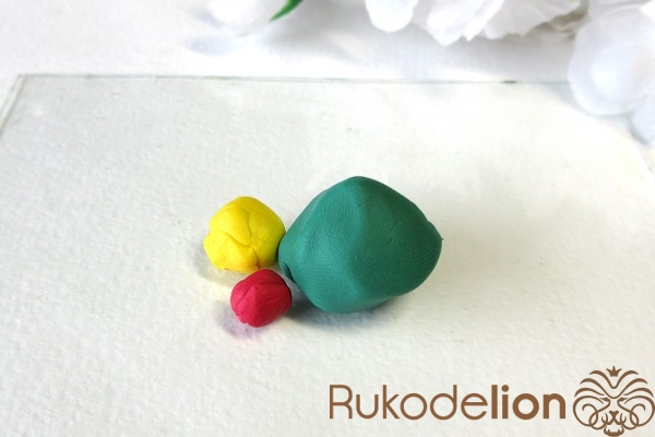 - запекаемая полимерная глина зеленого, желтого, светло-зеленого, белого, красного, синего цвета и полупрозрачная полимерная глина;