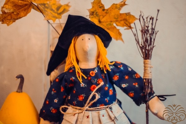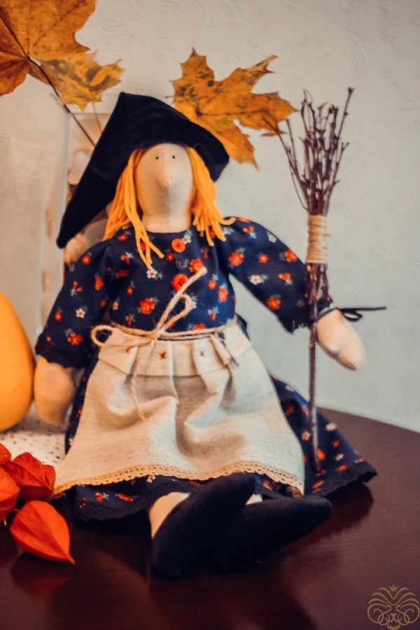 Текстильная кукла-ведьма Гретта, сделанная в преддверии Хеллоуина.