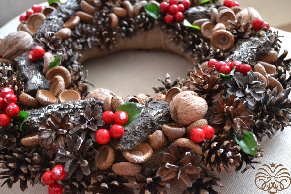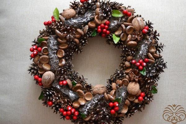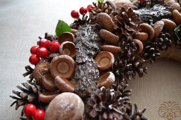 Кора дерева, шишки, орехи, желуди, искусственные ягоды