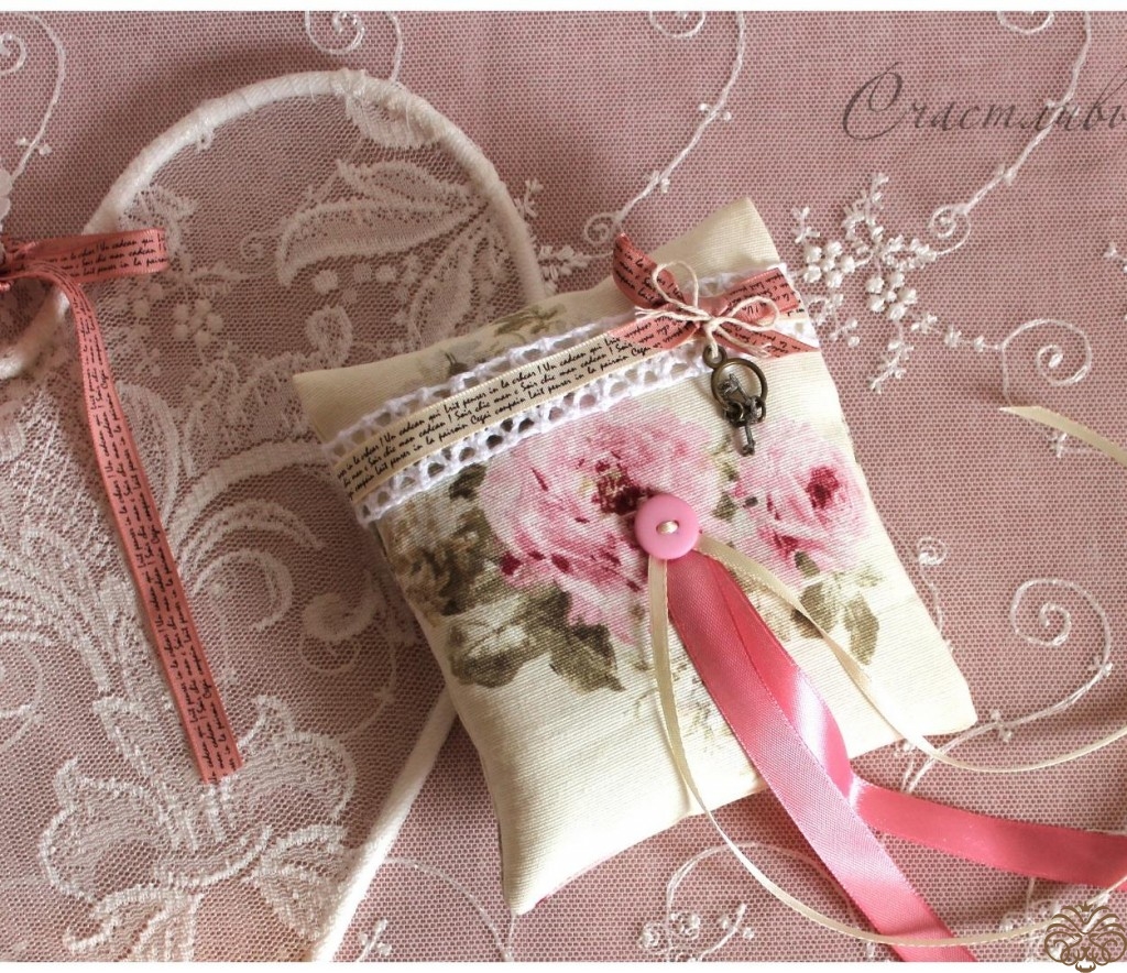 Свадебная подушечка выполненная в стиле "шебби шик"