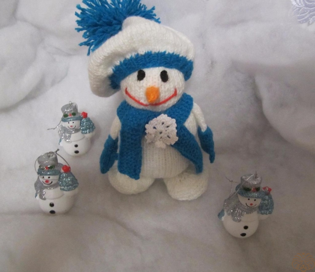 Мягкая игрушка - снеговик, связана крючком.