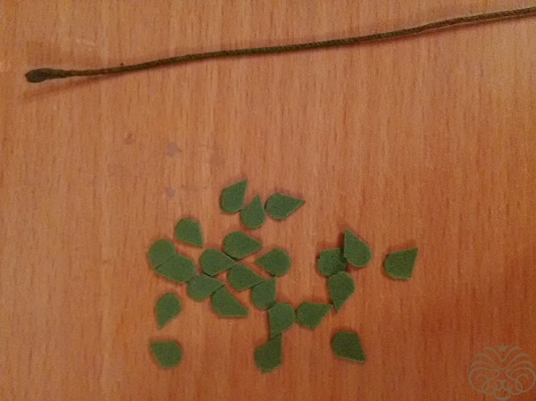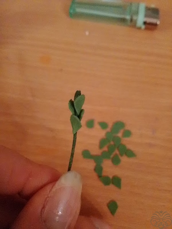 Птелька будет верхушкой веточки, далее произвольно приклеиваем наши листики. не бойтесь приклеивать их достаточно близко друг к другу дальше мы их "раскроем".