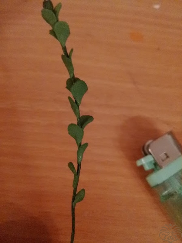 В случае со свечей :Берем веточку за петельку и аккуратно подносим под поток горячего воздуха от свечи так, чтоб стебелек стоял вертикально. Будьте внимательны начинайте из далека и медленно приближайте стебелек пока листики не начнут отворачиваться. Веточка как бы раскрывается. Убираем огонь, поправляем где что захотелось, ждем пару секунд пока остывает. Дальше уже в самой композиции можно изгибать эту веточку как вам нужно.Комментарии еще не добавлены