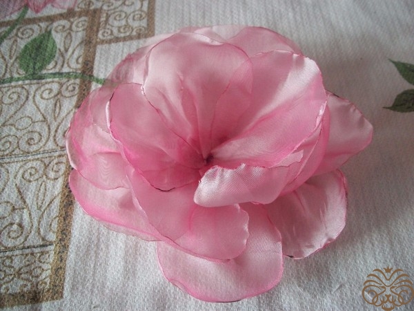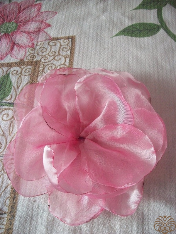 Простой цветок из органзы, может послужить как интерьерным украшением, так и аксессуаром для одежды и волос.