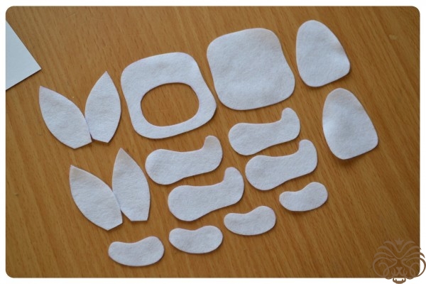 1. Фетр (полиэстеровый мягкий 1 мм): белый, бежевый, коричневый, розовый, салатовый, желтый