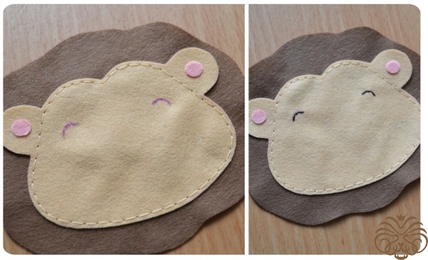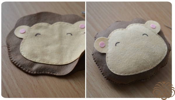 p.s. У следующей кошки я не приклеивала эти розовые детали ушек, а пришивала. По фото вы можете выбрать какой вариант вам больше нравится. Если вы захотите их все-таки пришить, то нужно сделать это на этапе, когда детали ушек еще только вырезаны. Т.е. пришиваете розовые участки ушек к верхним деталям ушей, а затем уже сшиваете обметочным швом сами уши