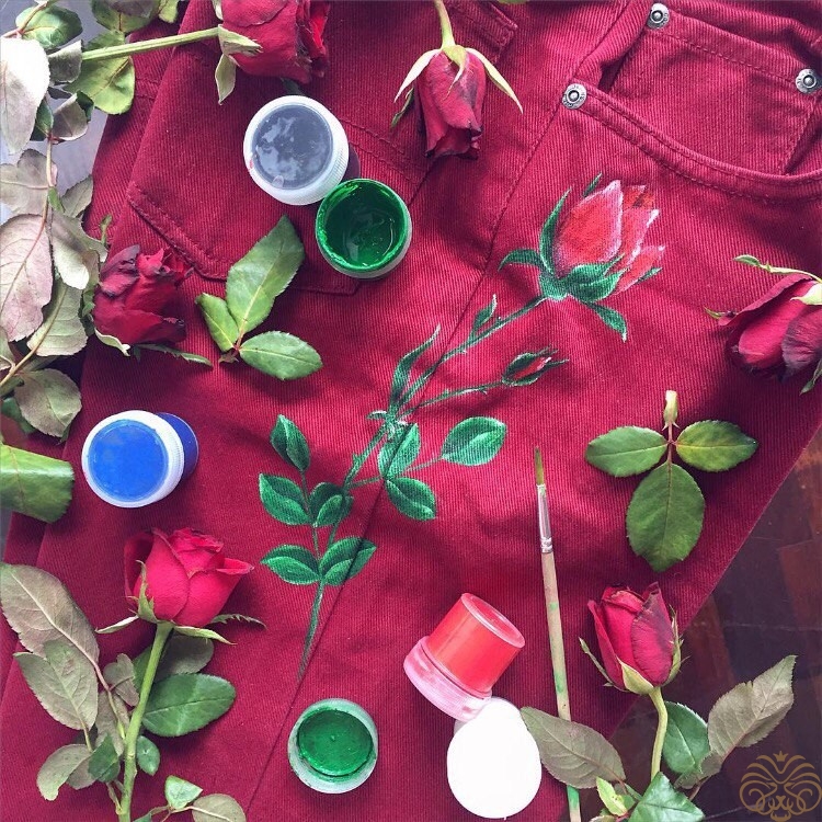 Что нужно? ЛЮБЫЕ ДЖИНСЫ (не судите строго, у меня красные), это могут быть те, которые уже носились и поднадоели, например. Краски по ткани, кисть, емкость с водой, обычные салфетки и мелок для ткани. Конечно, если будут еще цветы - отлично))