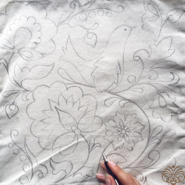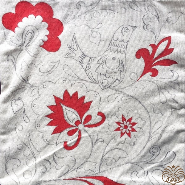 Сегодня мы создаем принт на холщевой сумке по русским мотивам хохломской росписи. Это средней сложности вязь узоров, выполненная всего в 3х цветах и не требующая художественных навыков работы с "переходами цвета" и созданием теней (что, безусловно, облегчает нам задачу).